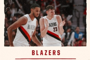 赛后开拓者官方晒出赢球海报,克林根和克里斯-穆雷登上封面。