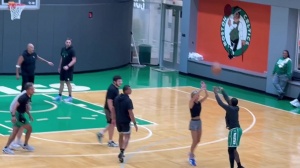 体育资讯10月15日讯 凯尔特人与赞助商New Balance今日联合举办了教练vs媒体的友谊赛。