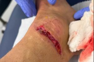 赛后迪涅晒出了自己受伤部位伤痕累累↓