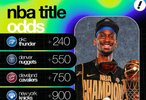 直播吧10月21日讯 雅虎体育报道,根据BetMGM的数据,列出了新赛季各队的夺冠赔率,其中雷霆依旧是总冠军的最大热门。