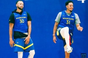 由图可见,斯蒂芬与赛斯两兄弟同框,库明加笑容满面,球队新援霍福德也有亮相。