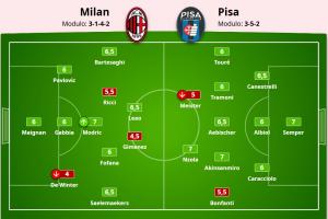 体育资讯10月25日讯 AC米兰2-2绝平比萨,赛后米体对米兰将帅的表现进行了打分。