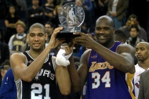 奥尼尔表示:“艾弗森、麦迪、杜兰特、奥尼尔,还有邓肯,这很难。我知道乔丹是GOAT,但我成长过程中没看他的比赛,所以我不能说他。”