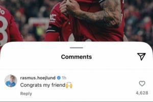 曼联旧将霍伊伦在其社媒下面对舍什科表示祝贺:“恭喜你,我的朋友🙌”