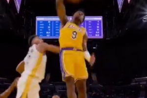 在本场比赛中,布朗尼上演了单臂补扣,赛后,詹姆斯也在INS转发了这段视频。