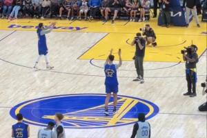 勇士今日球迷日活动,TJD大秀歌喉,演唱Beyoncé的名曲《Halo》