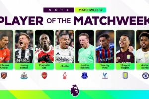 英超官方第12轮MVP候选:埃泽、安德烈·桑托斯领衔 皮克福德在列