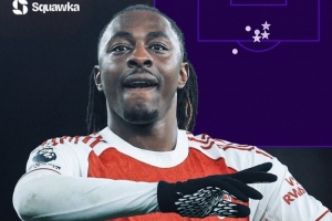 埃泽6射4正3进球领跑本轮,也是英超历史北伦敦德比首位戴帽球员